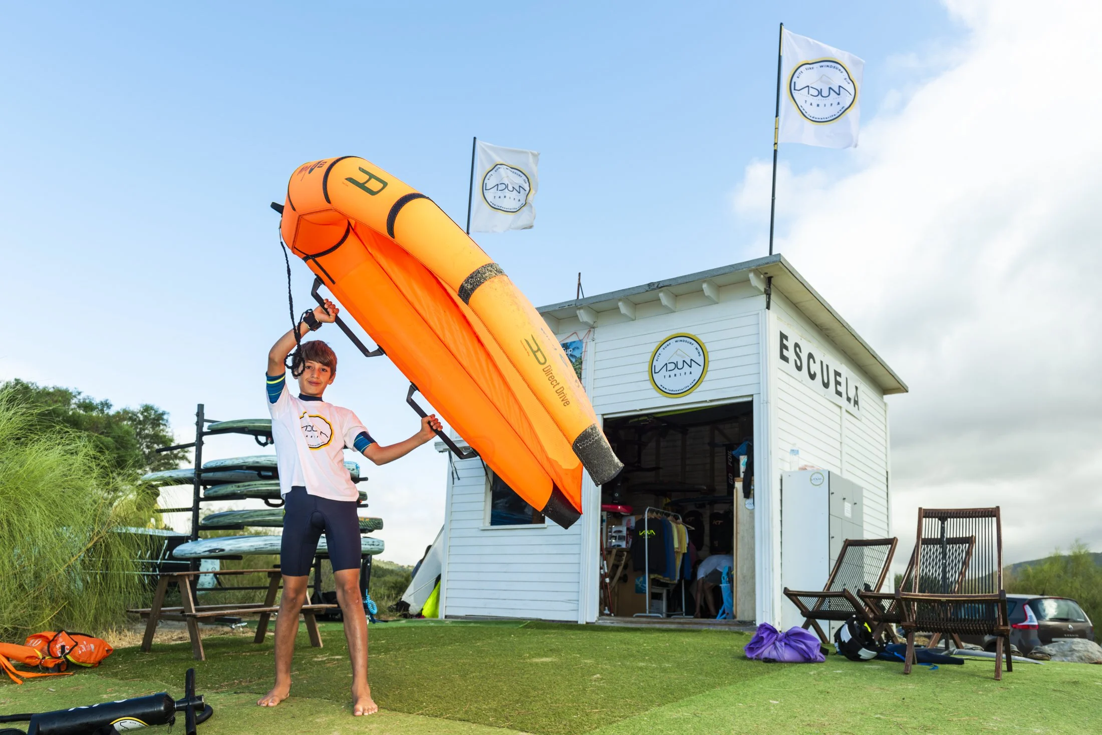 Ubicada en la playa de Valdevaqueros, LaDuna lleva más de 18 años enseñando deportes como windsurf y otros deportes de viento, y en los últimos años ha incorporado el wingfoil como parte de su oferta de enseñanza.